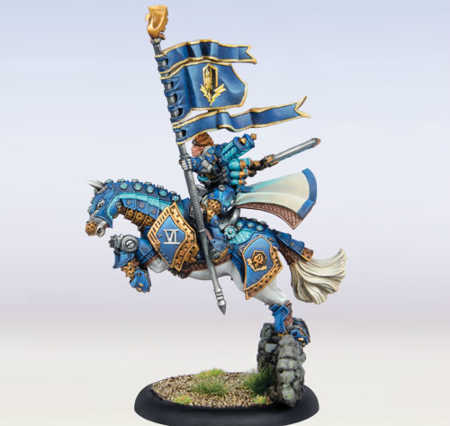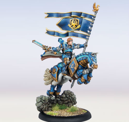 Promoted to the rank of Lord General, Coleman Stryker leads his Storm Division with unquestioned authority. Stryker commands his soldiers from the front lines, spurring his mount Valorous onward as he charges Cygnar’s enemies alongside his loyal Storm Lances. At the pivotal moment, Stryker is able to harness the galvanic potential of those charging with him into a thunderous tempest of destruction.
