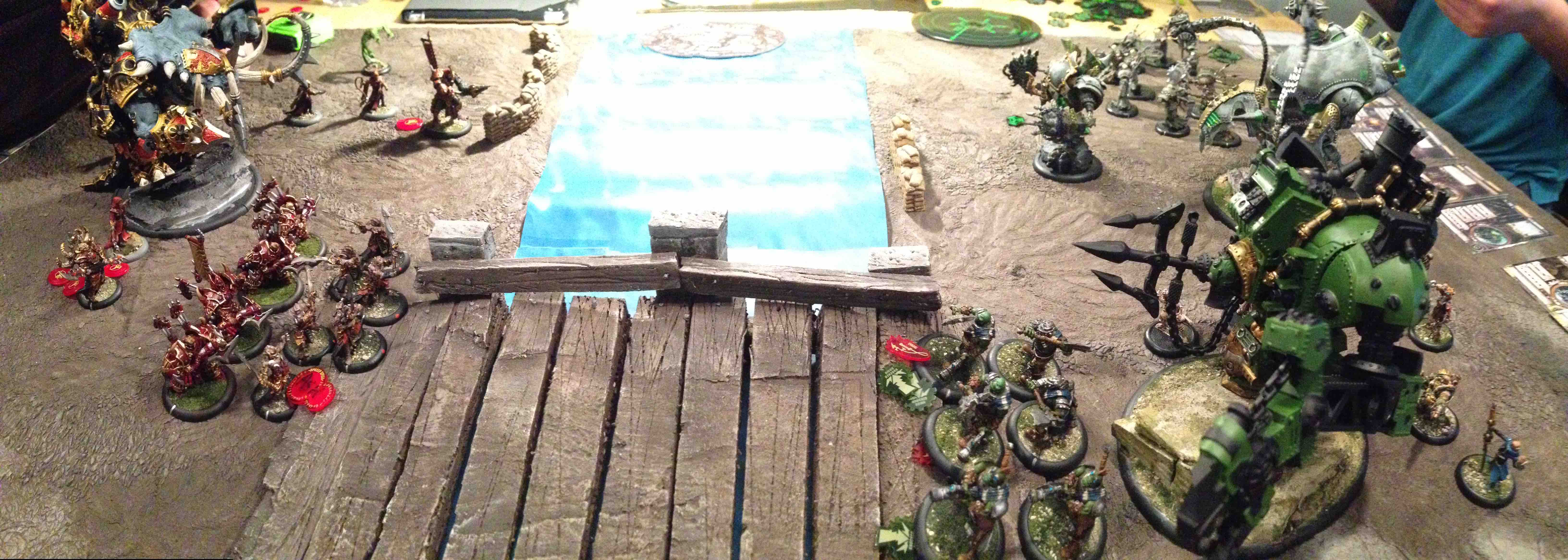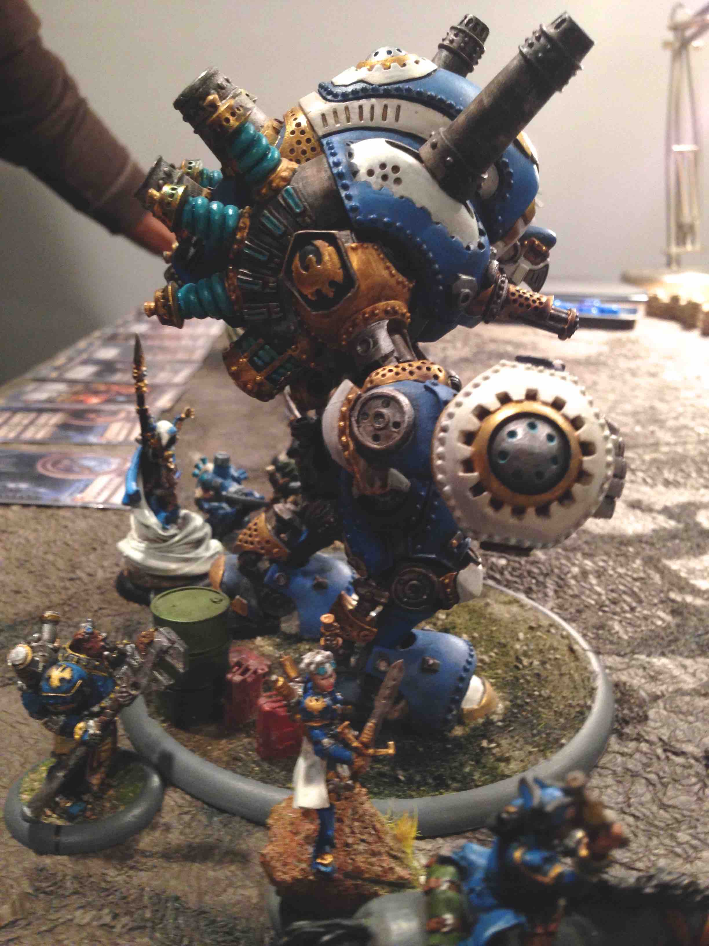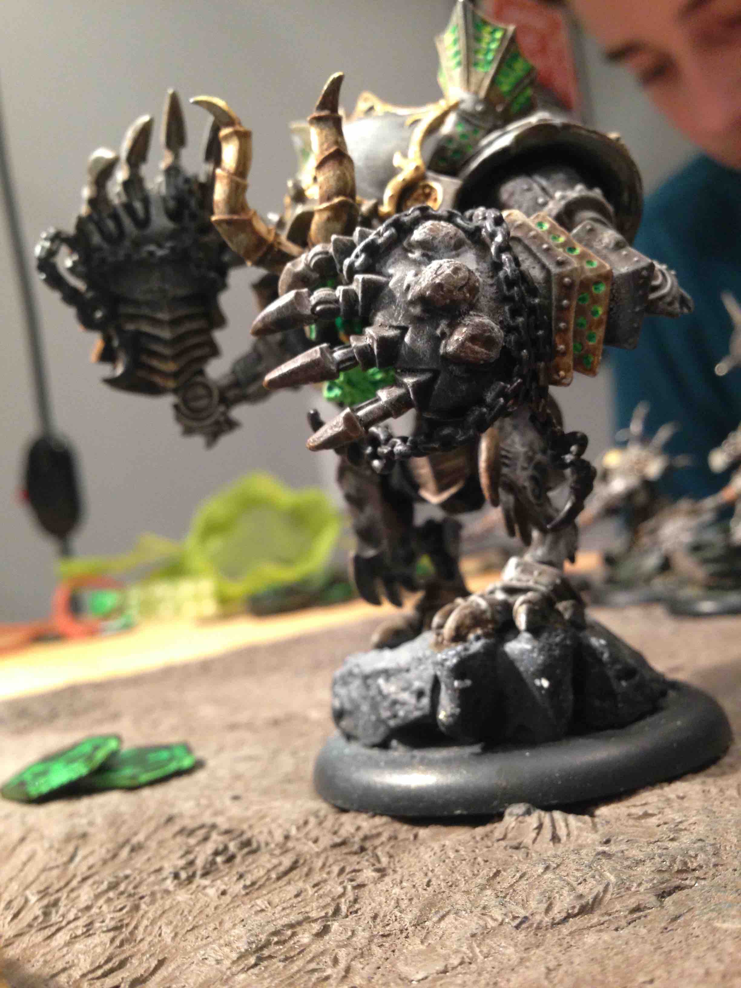 War Witch Deneghra with Kraken – Cryx Colossal and Drake MacBain with Galleon – Mercenary Colossal vs Lord Arbiter Hexeris with Mammoth – Skorne Gargantuan and Major Victoria Haley with Stormwall – Cygnar Colossal. Victory Lord Arbiter Hexeris and Major Victoria Haley.