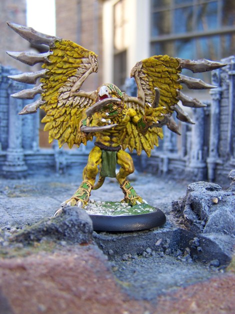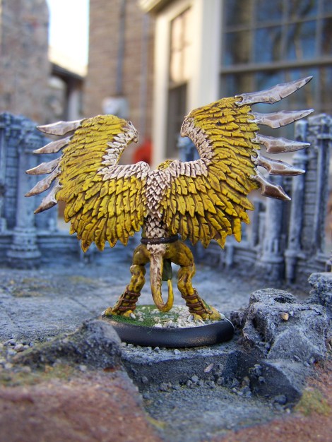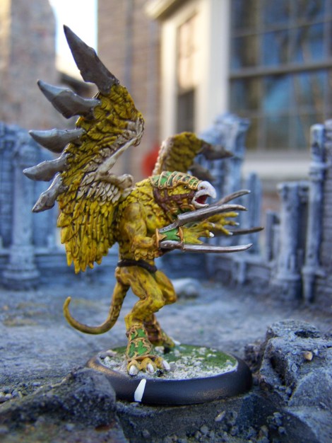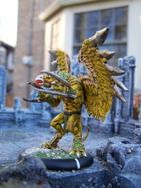 Razorwing griffons plunge into battle with the piercing shrieks of birds of prey, diving brutally into enemy formations. Flying just a few feet above the ground, they move like threshers across crops of wheat. The griffons use their sharp-edged blades to slash through ranks of infantry, leaving a bloody trail of the dead and dying to mark their passage.