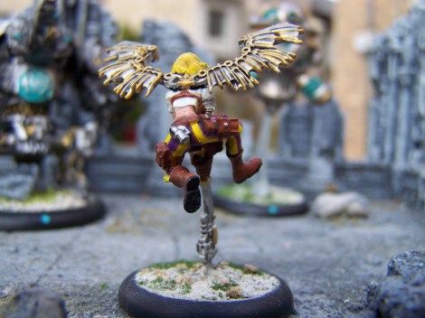 This wiz with a wrench has a place on your bench! As good at fixing things as she is at breaking them—you can see the advantage to that—Widget will leave your opponent asking where this angel got her wings. (Answer: She crafted them out of the sorry scraps of the last scavenger to get in her way.)