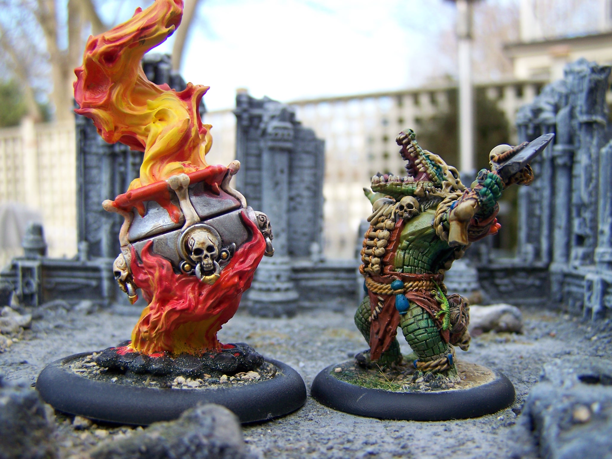The boil master is terrifying to look upon as he stirs his spirit cauldron, a large cast-iron pot full of a bubbling, sickly soup of melted fat, body parts, and blood. The boil master feeds this cauldron a steady supply of dead and dying meat in order to coax forth the feral spirits of decay and death, happily chopping up any who draw near lured by the fragrant smell of the stew.
