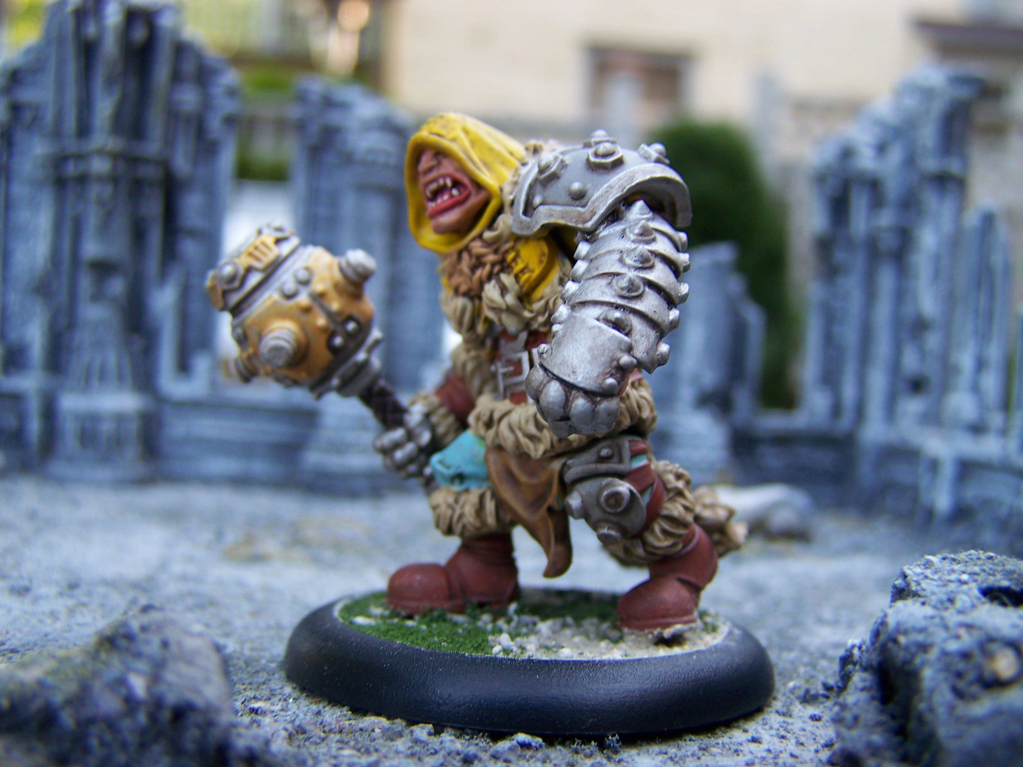 During this journey, Gudrun discovered the wreckage of an old scavenger crew and came into possession of a strange mekamaul arcane artifact. The power seeping from the relic was addictive but volatile, agitating the ogrun even as he grew more reliant on its power. Confused and angry, Gudrun continues his search for survivors…and answers.