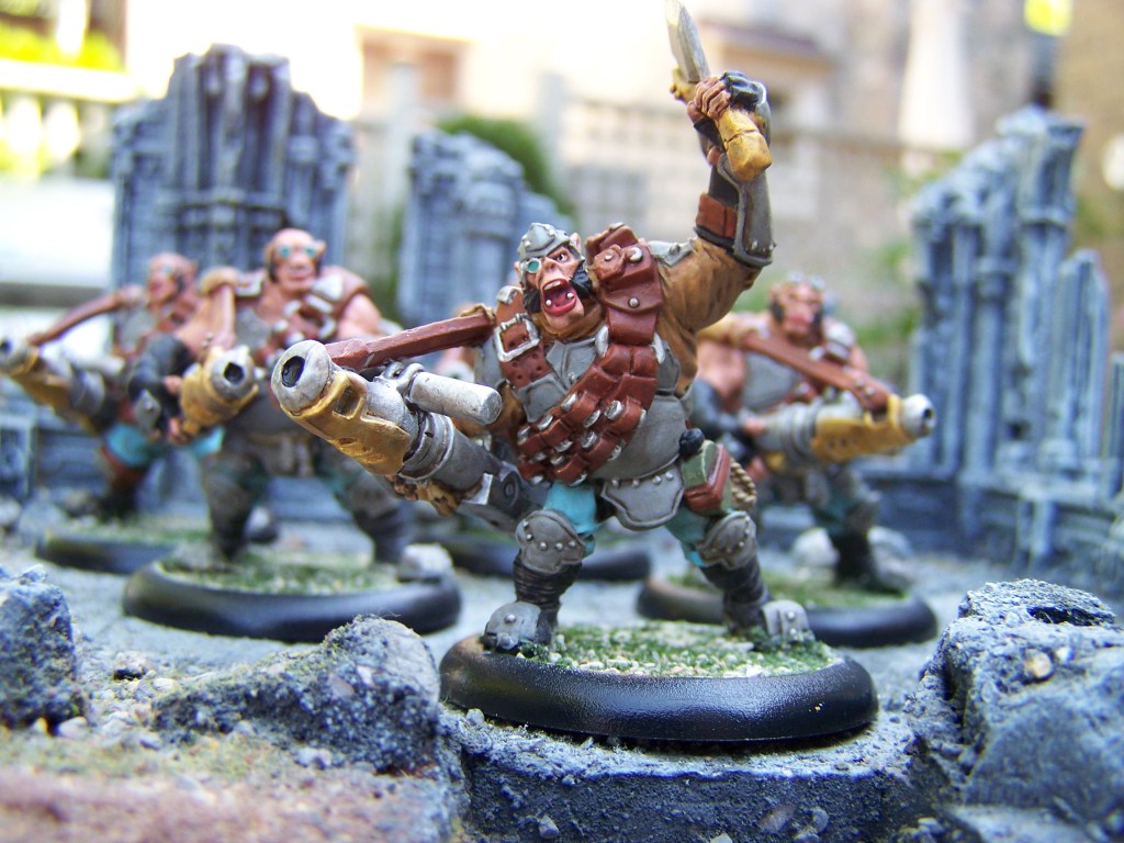 Strong enough to wield handheld battle cannons that fire explosive shells across the battlefield, the ogrun assault corps serve their employers as highly mobile artillery. Their great strength and fearsome axes allow them to effectively deal death in melee as well as at range.